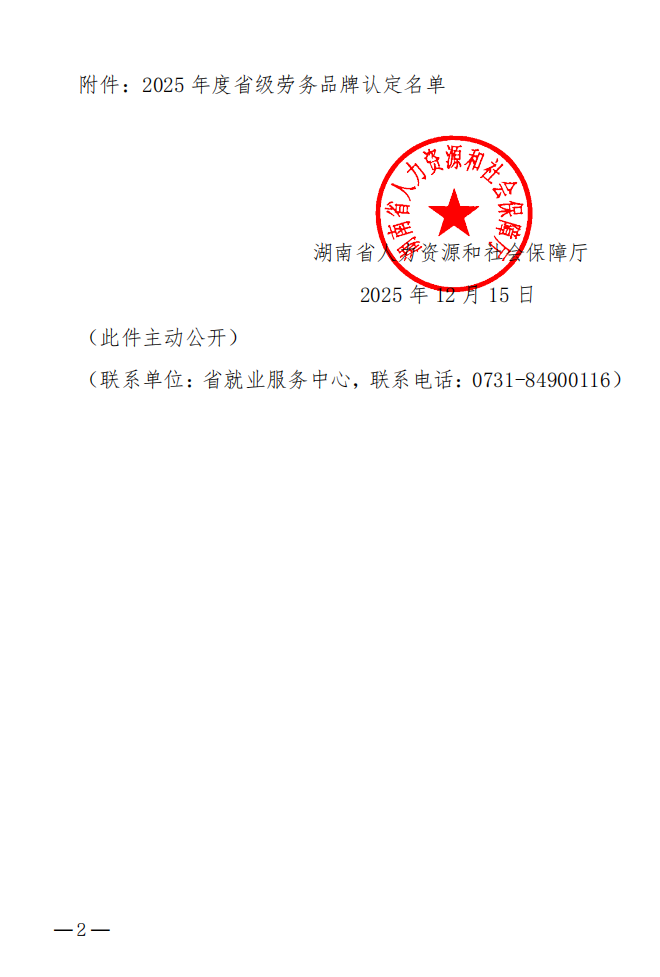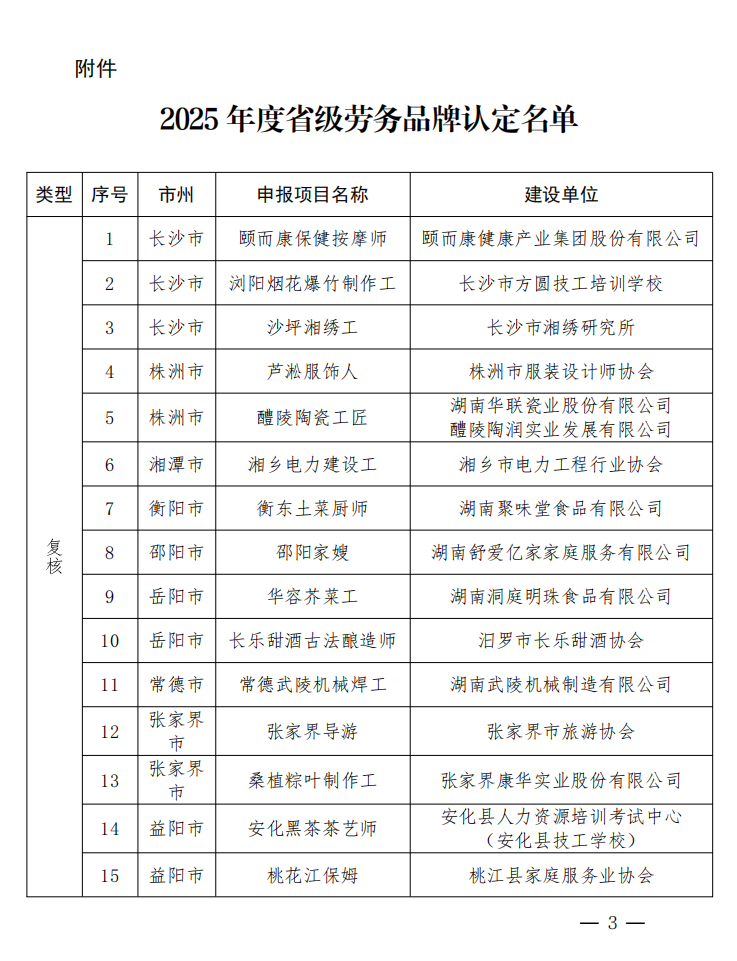 湖南省人力资源和社会保障厅关于认定2025年度省级劳务品牌的通知